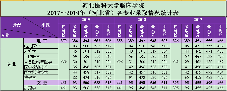 ABpay 2017-2019年各专业控制线、投档线、录取线统计表(河北省)