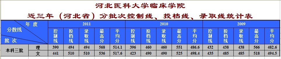 ABpay 2009-2011年(河北省内) 录取线统计表